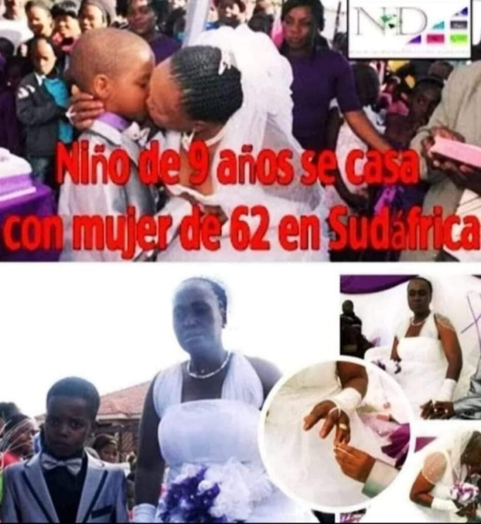 Sehún cuenta The Independent, Saneie Masilela es un chico de solo 9 años, ha contraído matrimonio con Helen Shabangu, una mujer 53 años mayor que él.